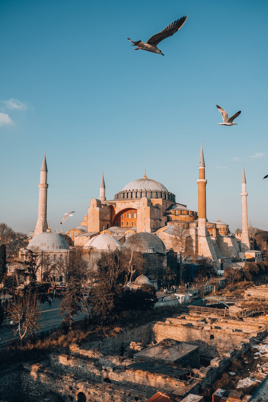 - Hagia Sofia ble opprinnelig bygget som en katedral rundt 500 e.Kr., fra 1453 til 1935 var det en moske og etter det ble det et museum. I 2020 ble det en moske igjen.