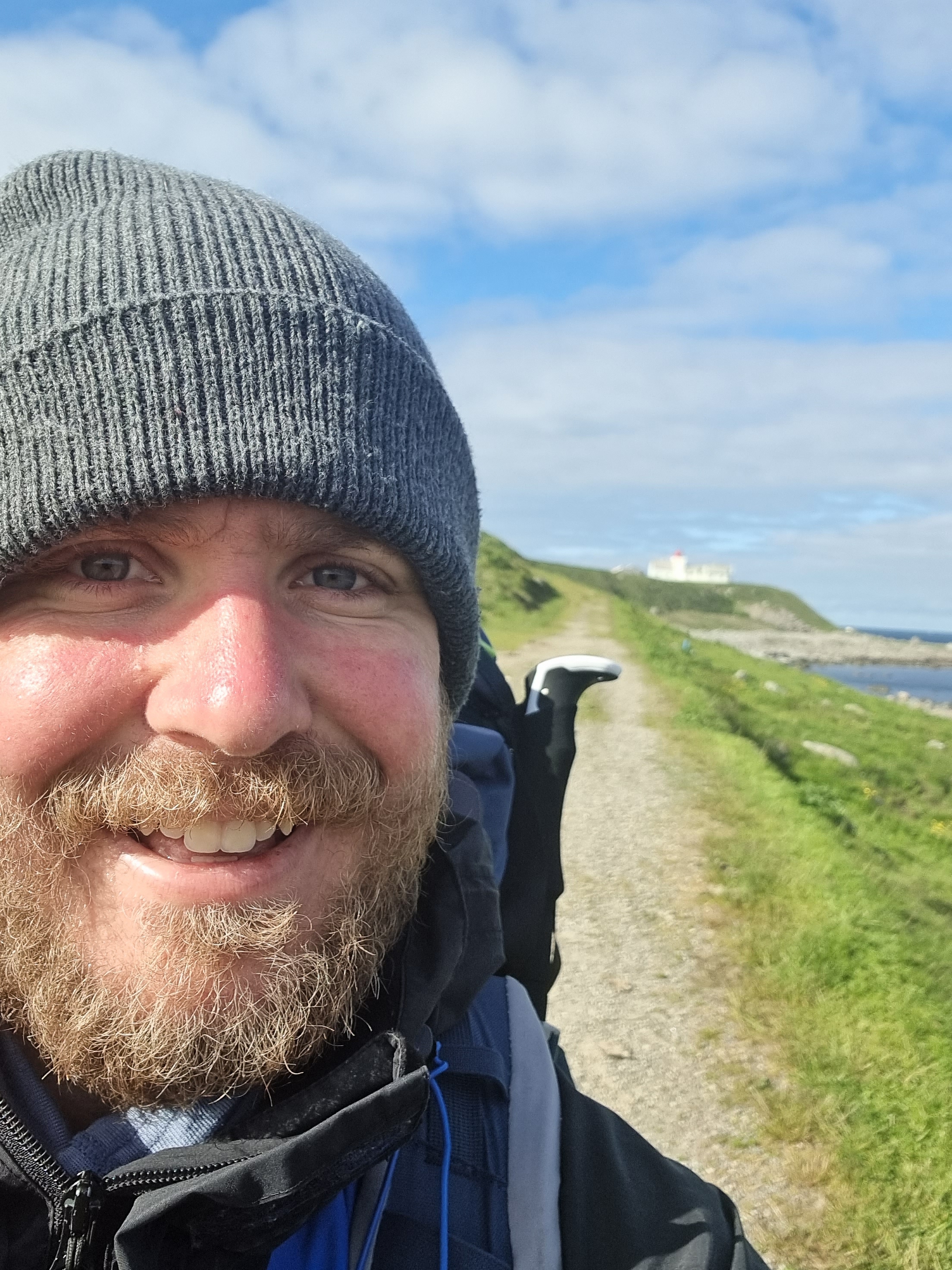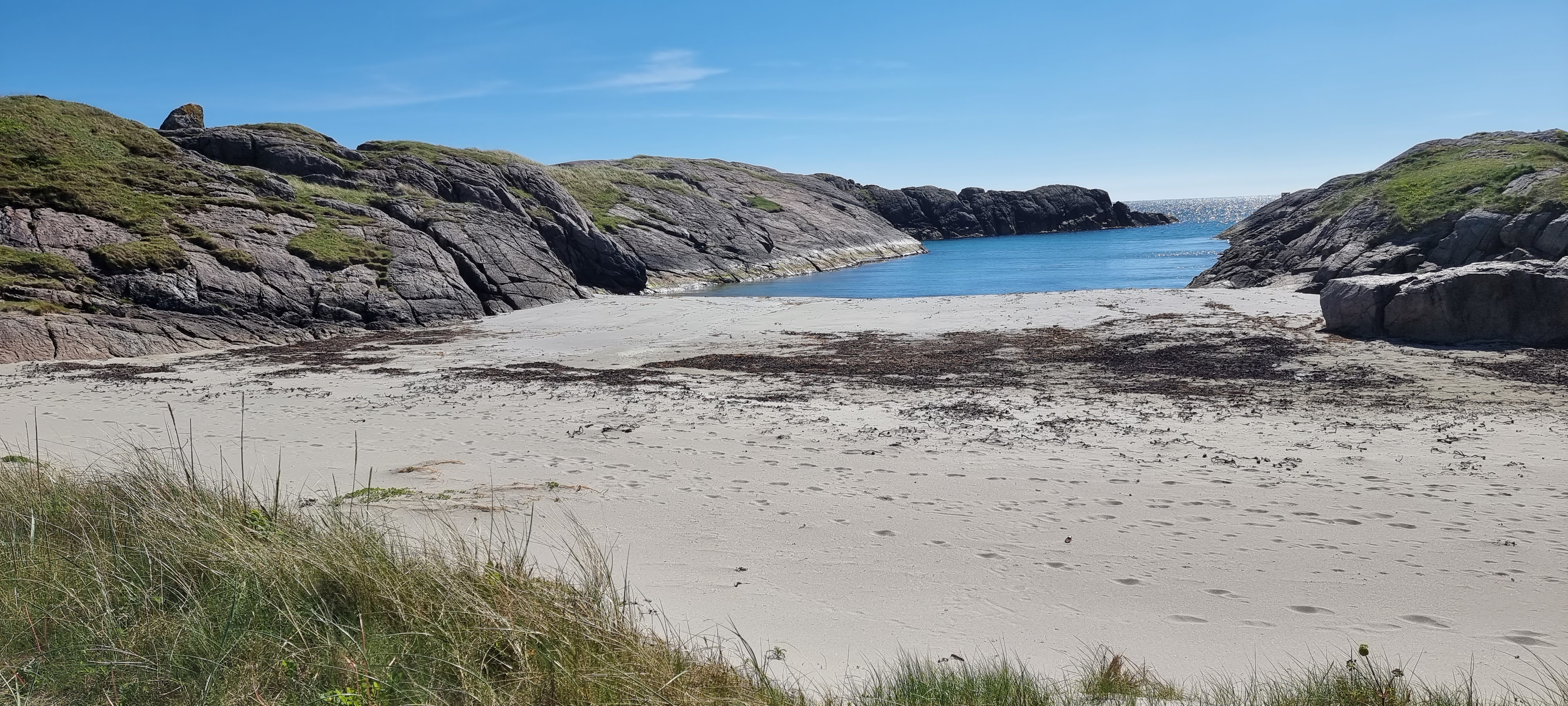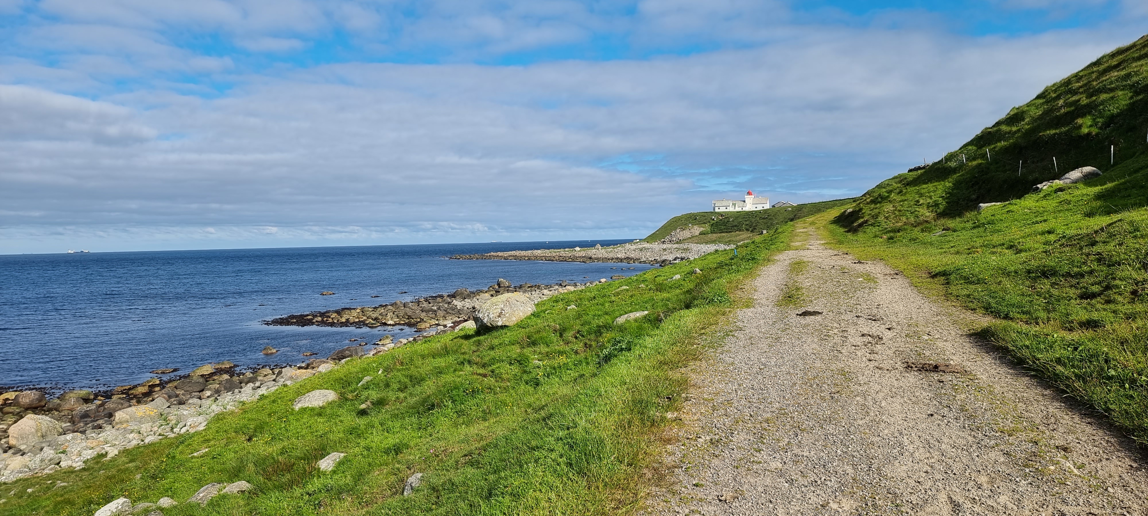 Med kraftig pålandsvind var det for kaldt i vannet til å bade starten av juni. Så til tross for at kalenderen påstod at det var sommer, måtte jeg bruke både lue og ullhals. Det nærmeste jeg kom bading var vading over en liten elv, og det var mer enn kaldt nok. Når jeg følgte Kongveien var den godt tilrettelagt, og det var en godt merket sti.